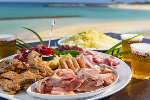 帰りもバスなので運転の心配なし!目の前に広がる沖縄の海を眺めながら、おいしいお肉と冷たいビールを堪能!