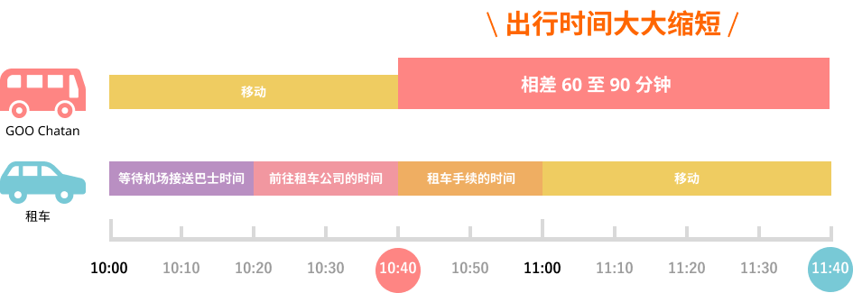 这是连接那霸机场与以美国村闻名的北谷町的直达移动服务。最短50分钟即可到达目的地,为您提供舒适且快捷的出行体验!